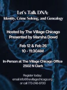 Our Thursday Murder Club meets every other Thursday in January. In February, we’re shaking things up and meeting every Thursday. Two of those February sessions will feature Marsha Dowd, who will share true crime stories, mysteries, and insights into crimes solved using DNA and identity forensics.